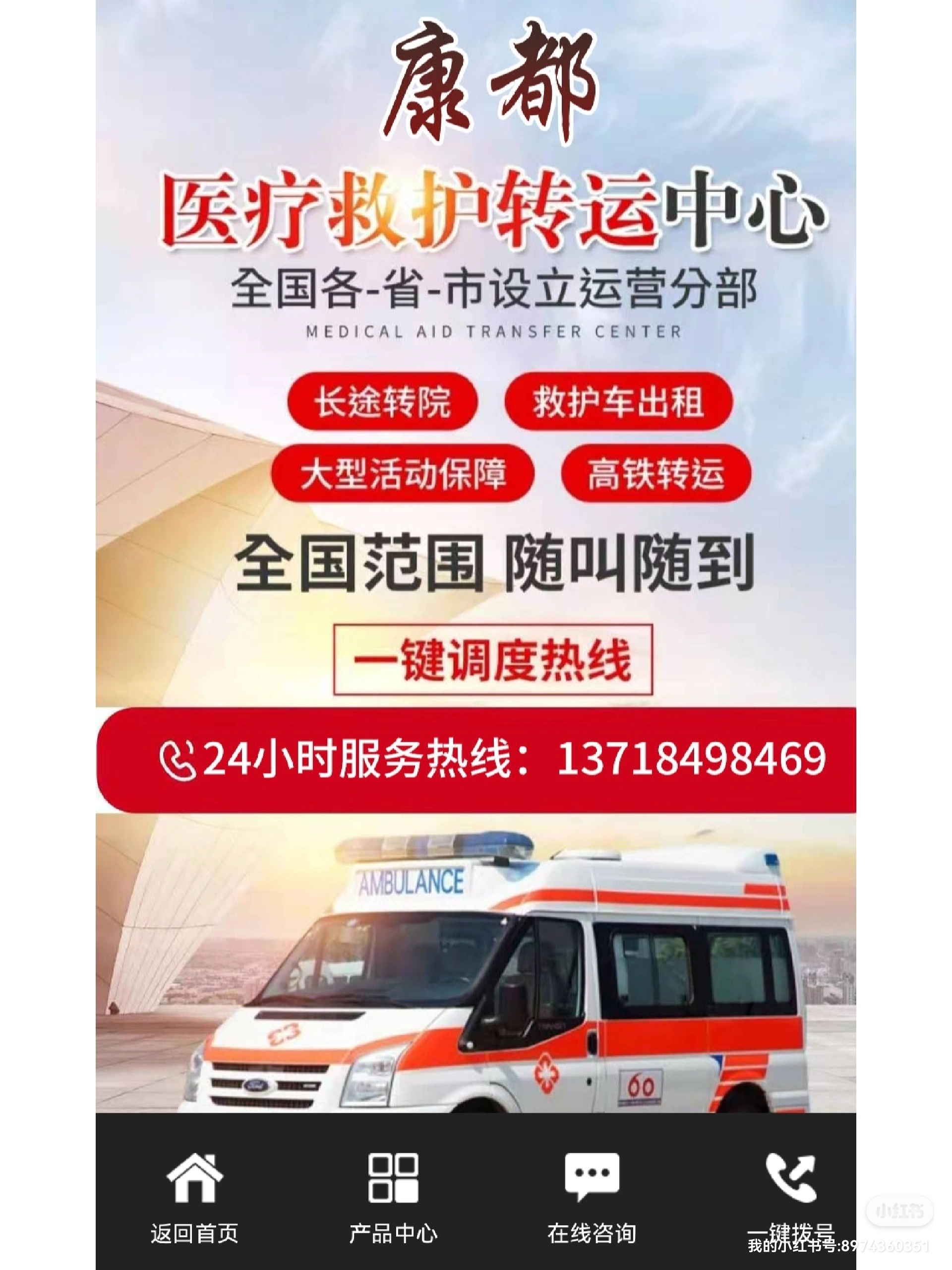 五华县120救护车长途转运告诉您救护车是一种在时间前提下为病情严重的伤者提供医疗保障的汽车,可以帮助那些缺乏运输或危急从现场转移的病人。特殊类型的救护机构,如医院机场,在紧急情况下提供旅行或度假,远离医院。养老院或护理院的老年人在提供长期护理时经常使用救护车。救护车的应用:一、救护车专车,专人负责,出车人员穿工作服。二、救护车上的医疗器械每次接送任务完成后,应进行检查、补充。三、保持救护车清洁,每次